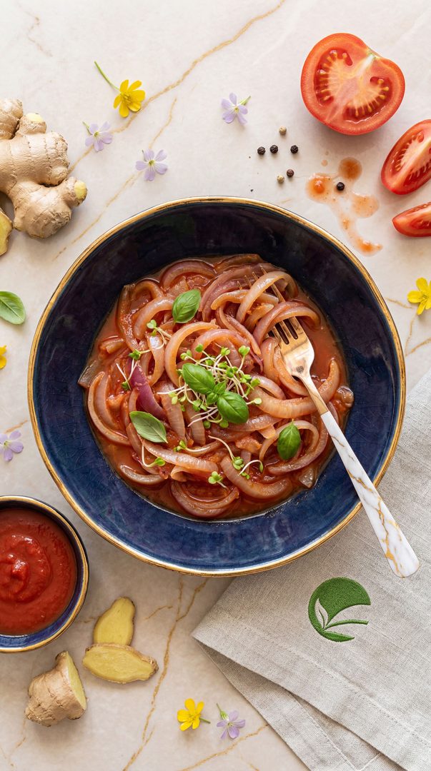 Duszone imbirowe cebule w aromatycznym sosie warzywnym