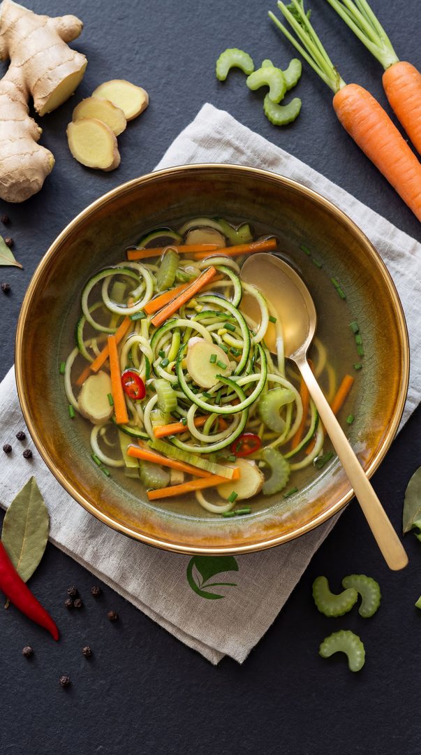 Surowe tagliatelle z warzyw w imbirze i czosnku Kto